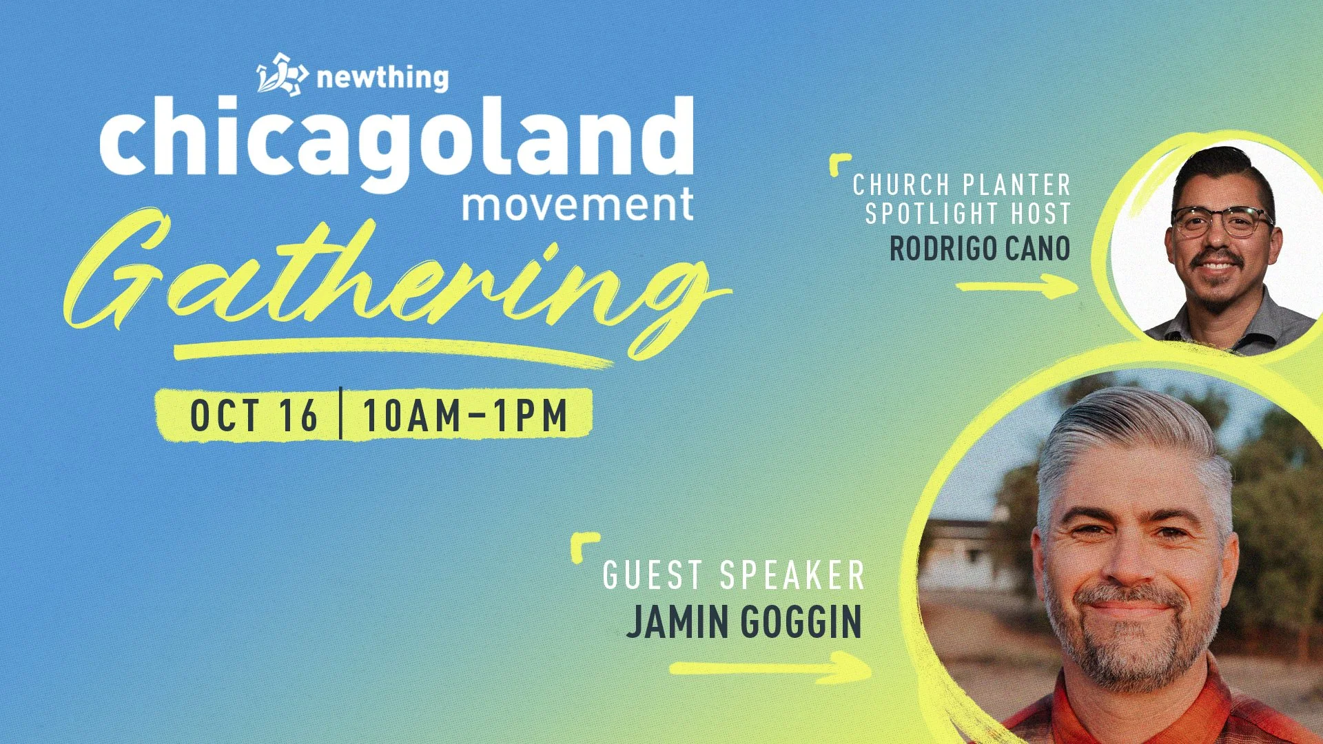 Join us IN-PERSON for a special Oct 16 Chicagoland Movement Gathering, 10 AM - 1 PM. We are grateful to our friends at Park Community Church for hosting at their Near North location (1001 N. Crosby)! We will hear from Jon Ferguson, Rodrigo Cano, our Strategic Partners and our special Guest Speaker: Jamin Goggin.